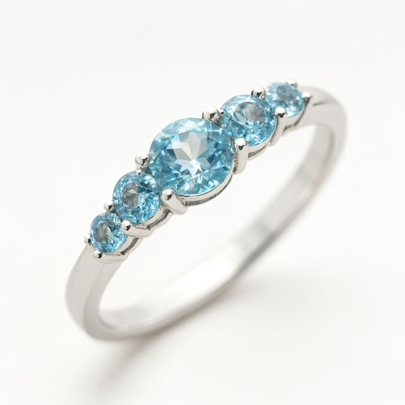 הטבעת משובצת אבני בלו טופז טבעיות – בגוון תכלת צלול ועמוק, שמקרין רוך, שקט פנימי ואור.