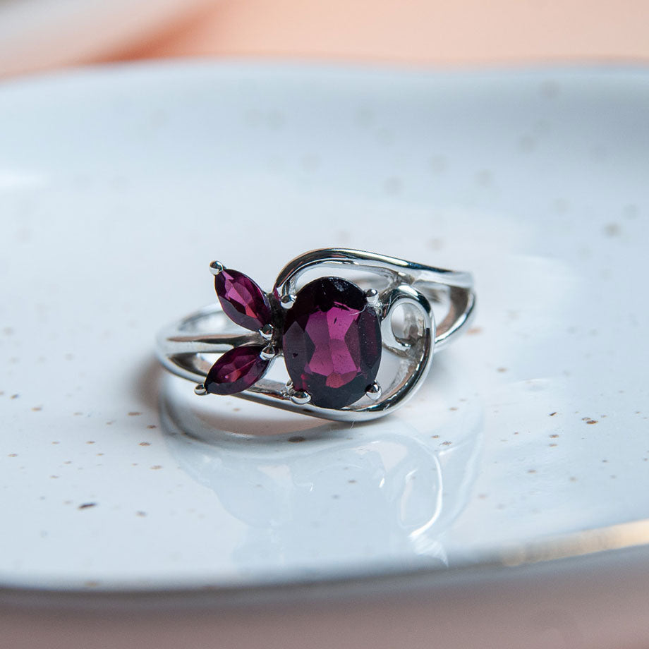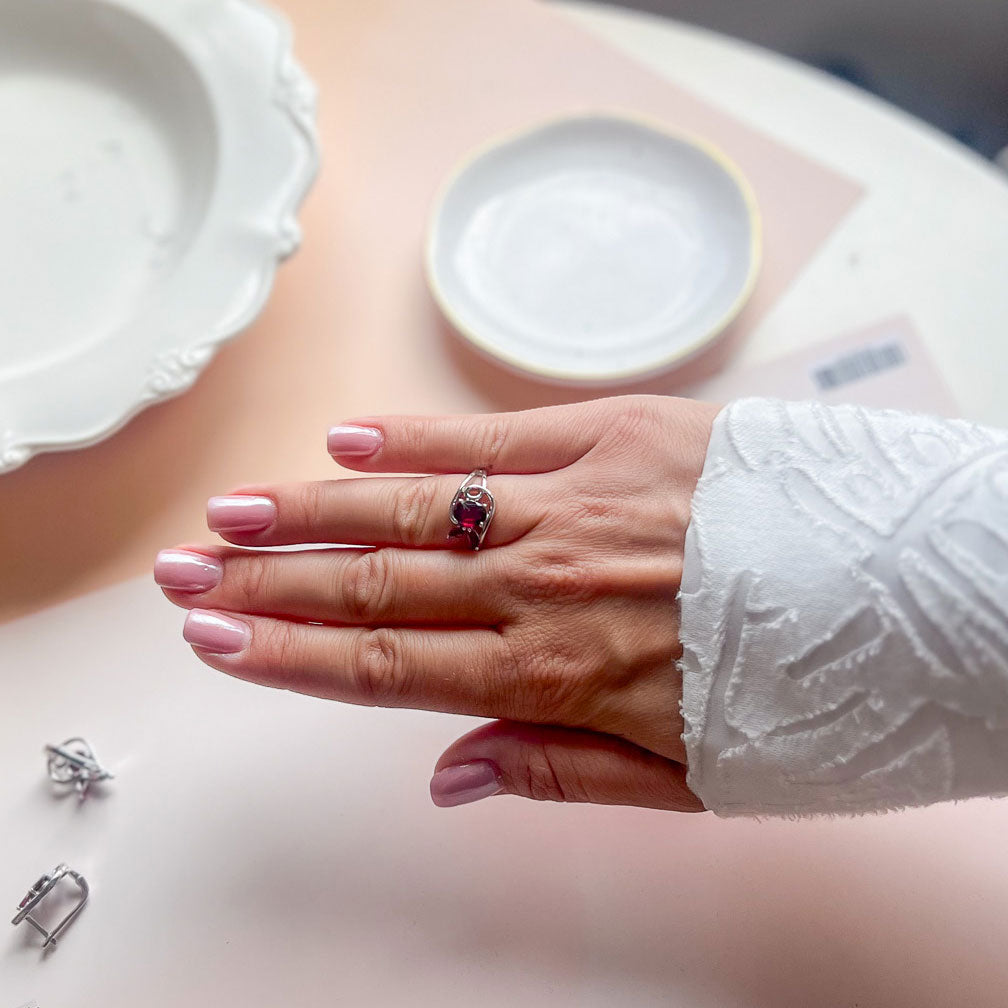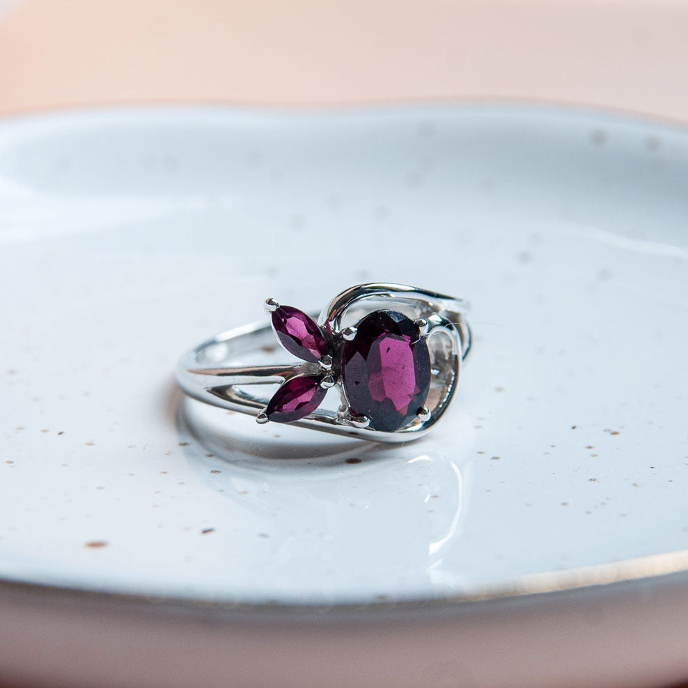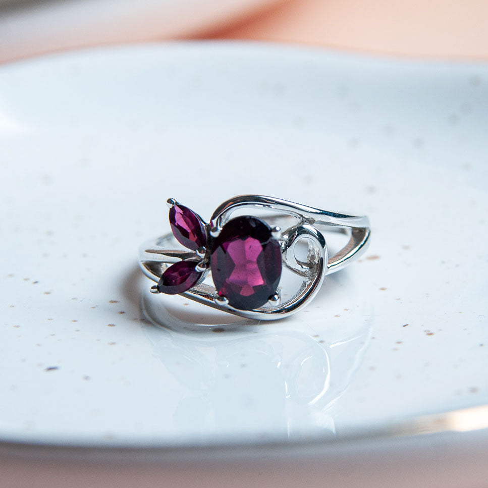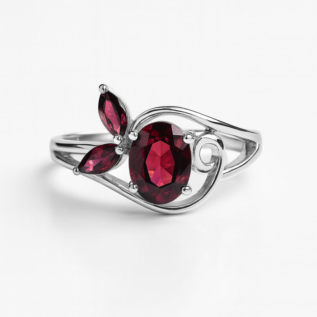 טבעת כסף "לינדה" עם אבני גרנט