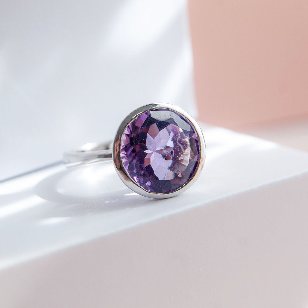 טבעת כסף "קידמן" עם אבן אמטיסט