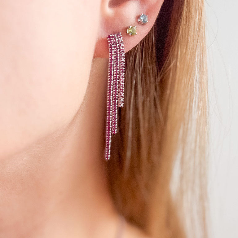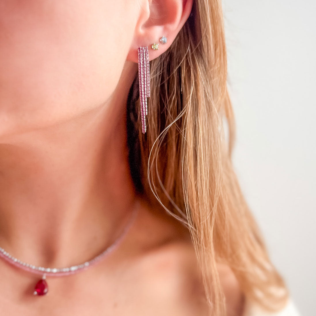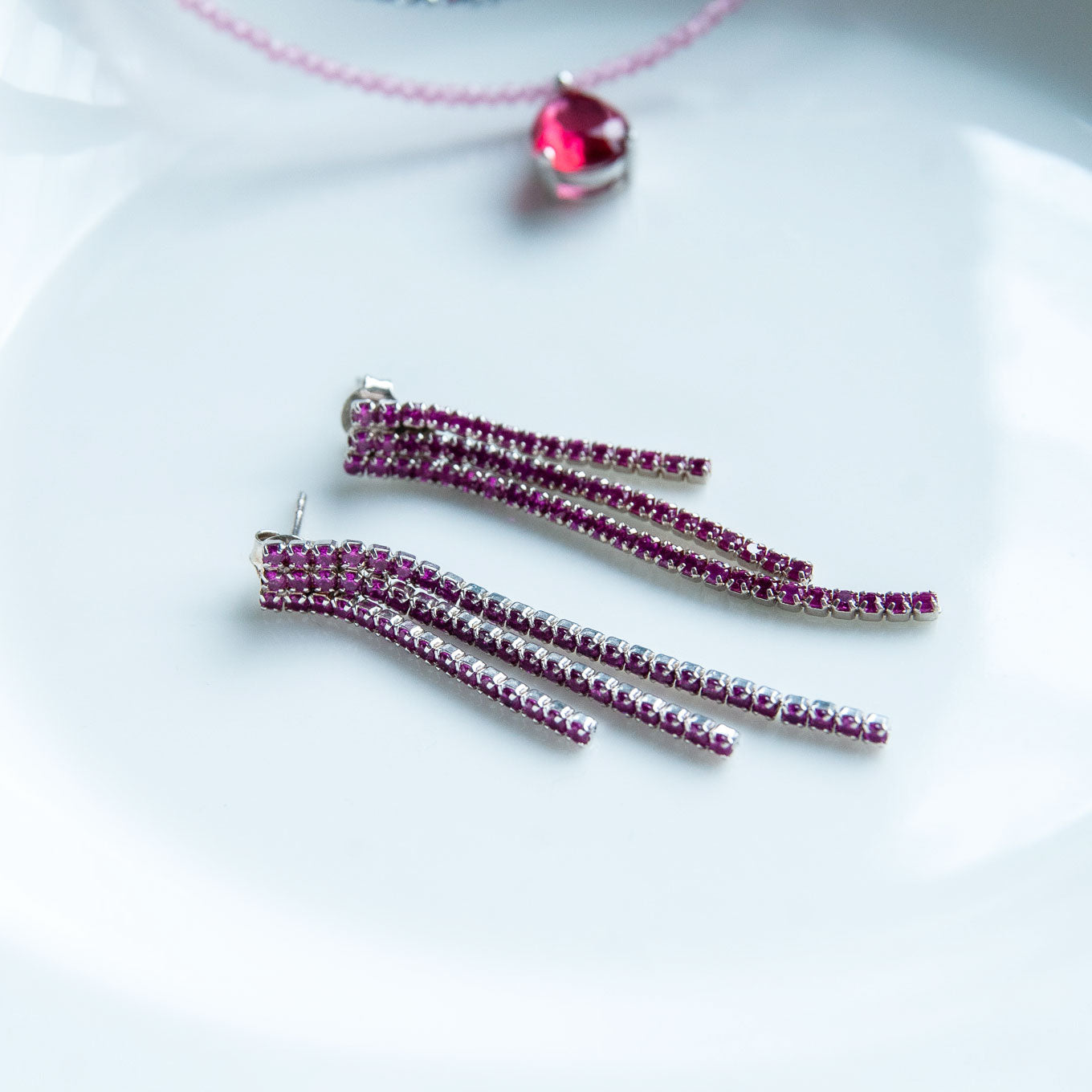 עגילים נופלים עשויים מכסף 925, בגימור ציפוי רודיום יוקרתי עם אבני זרקון שקופות בגוון ורוד.