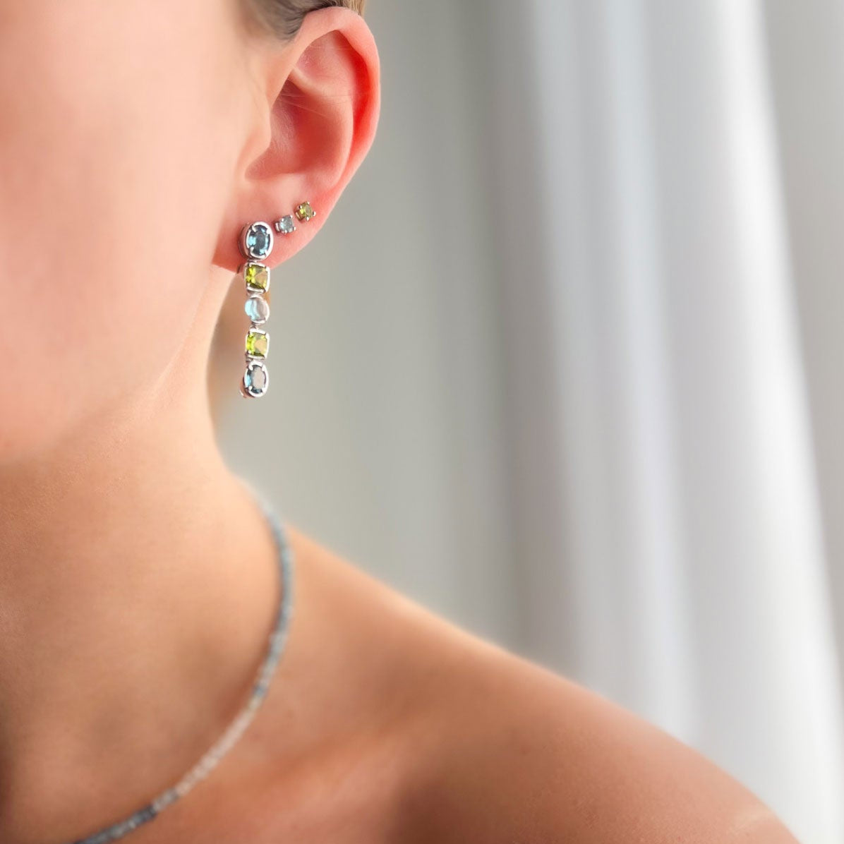 החיבור בין הבלו טופז לפרידוט יוצר שילוב ייחודי של רוגע פנימי לצד שמחת חיים, אנרגיה נקייה עם תחושת רעננות ותקווה. עגיל שמוסיף יוקרה ועדינות גם יחד, עם משמעות עמוקה והרמונית.