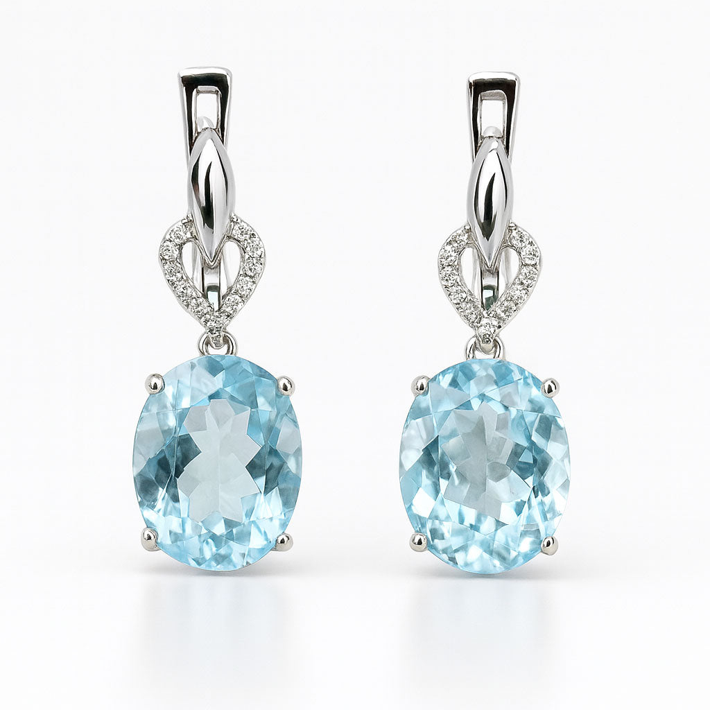 העגילים משובצים באבני בלו טופז טבעיות בגוון תכלת רך ומרגיע, בשילוב אבני זירקון מנצנצות שמוסיפות ברק ויוקרה.