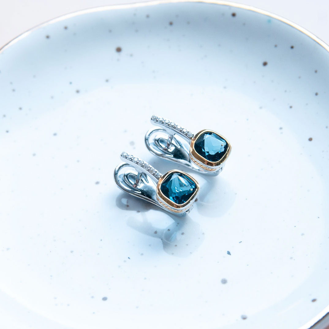 עגיל כסף "רונה" עם אבני לונדון טופז