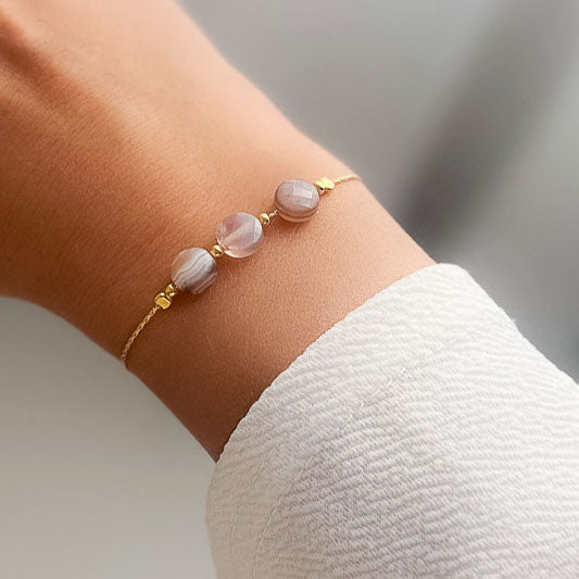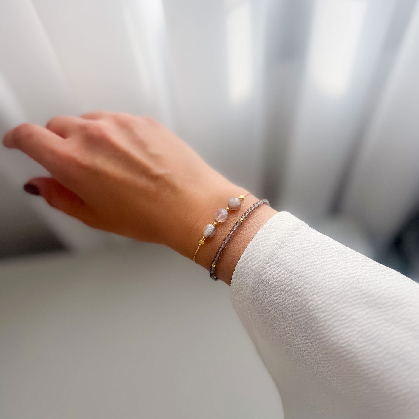 משולבות בו 3 אבני אגת אפורות שטוחות ועדינות, היוצרות מראה נקי, אלגנטי והרמוני.
