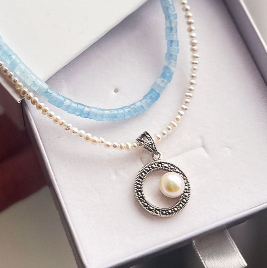 עשויה בעבודת יד מאבני אקוומרין טבעיות.