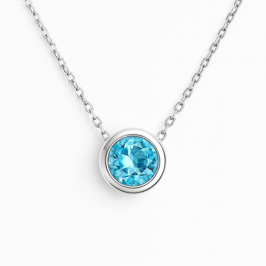 במרכזה תליון אלגנטי המשובץ באבן בלו טופז טבעית בגוון תכלת עמוק וזוהר, המעניק לשרשרת מראה נשי, יוקרתי ורענן.