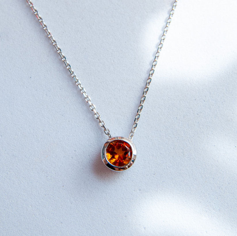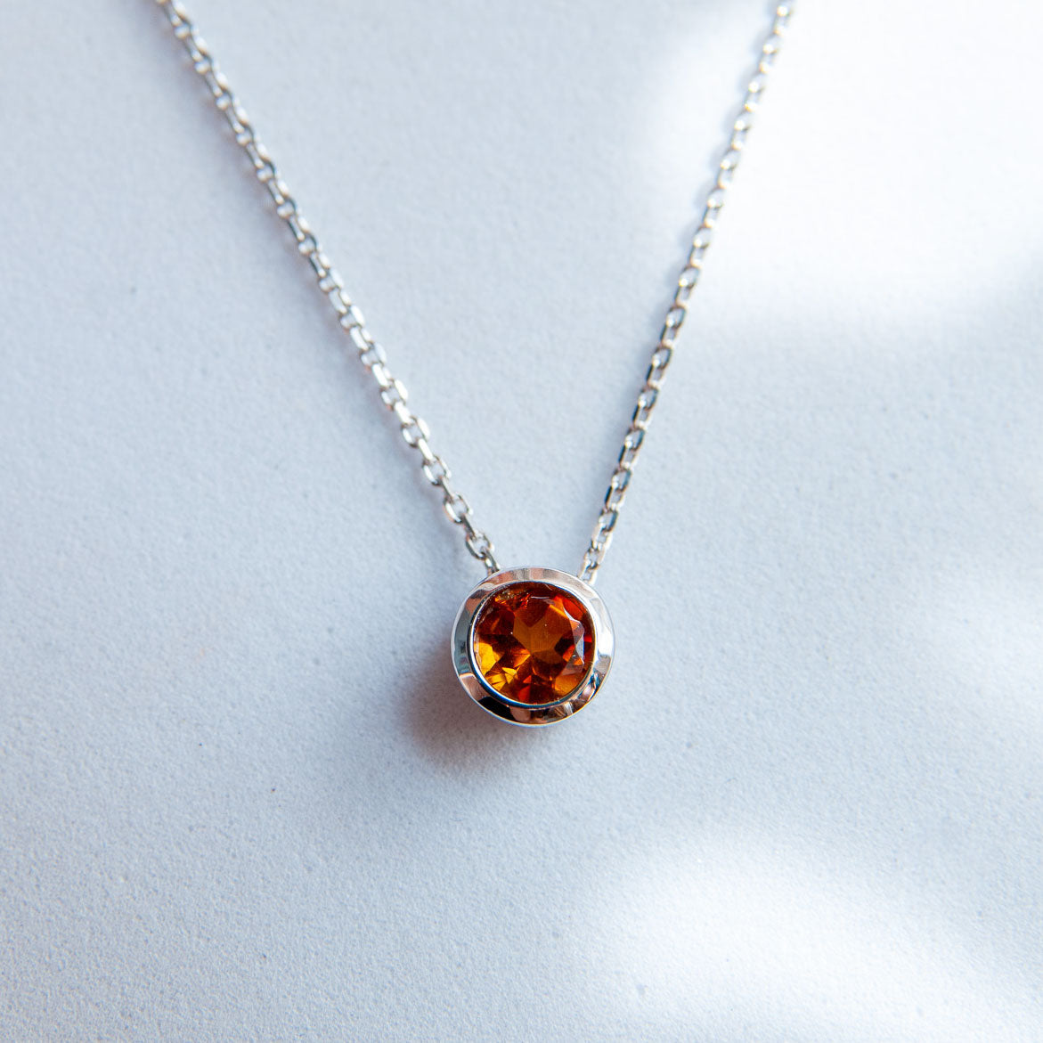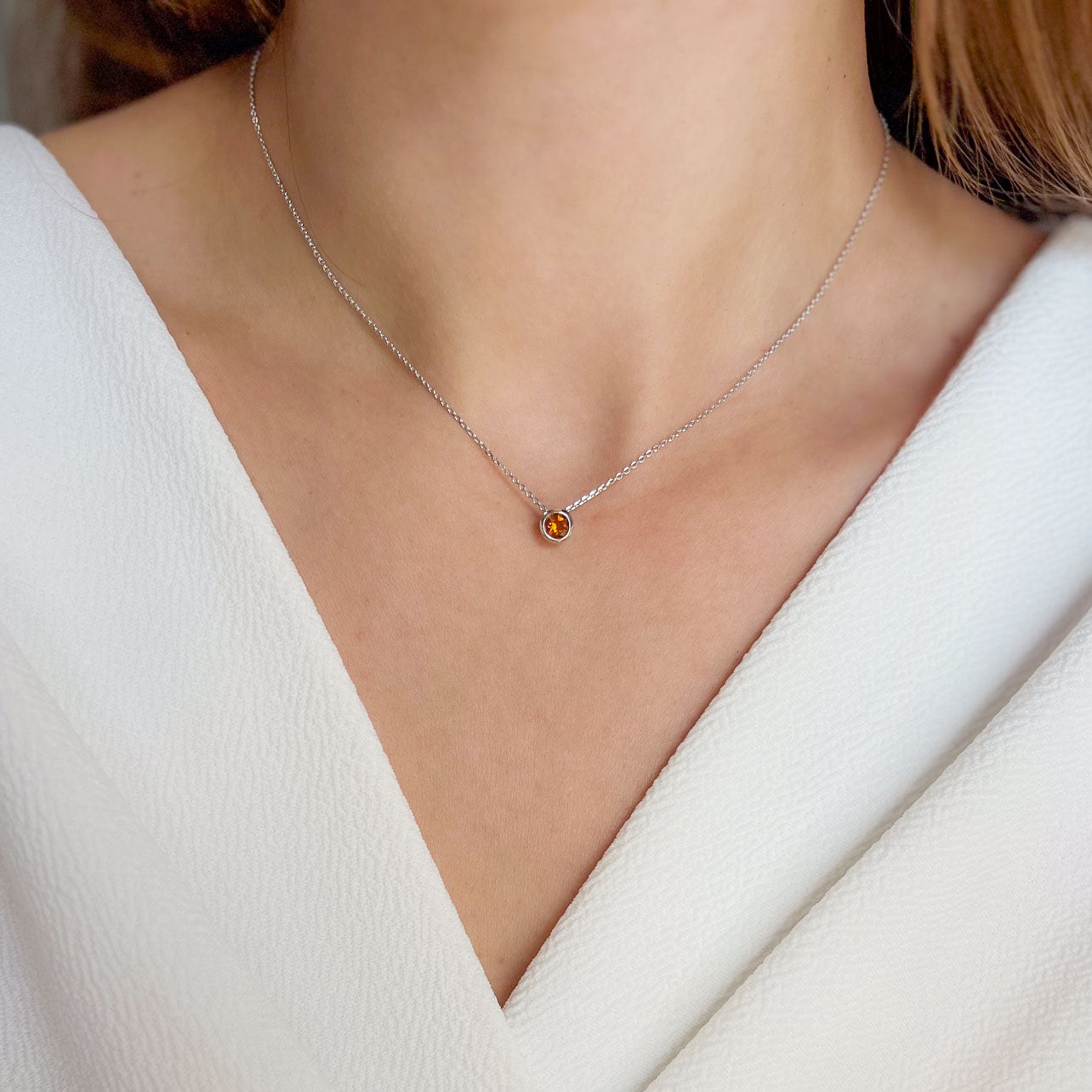 במרכזה תליון אלגנטי, משובץ באבן סטרין טבעית בגוון צהוב־זהוב חמים, שמעניק לשרשרת מראה חיוני, מלא אנרגיה ואור.
