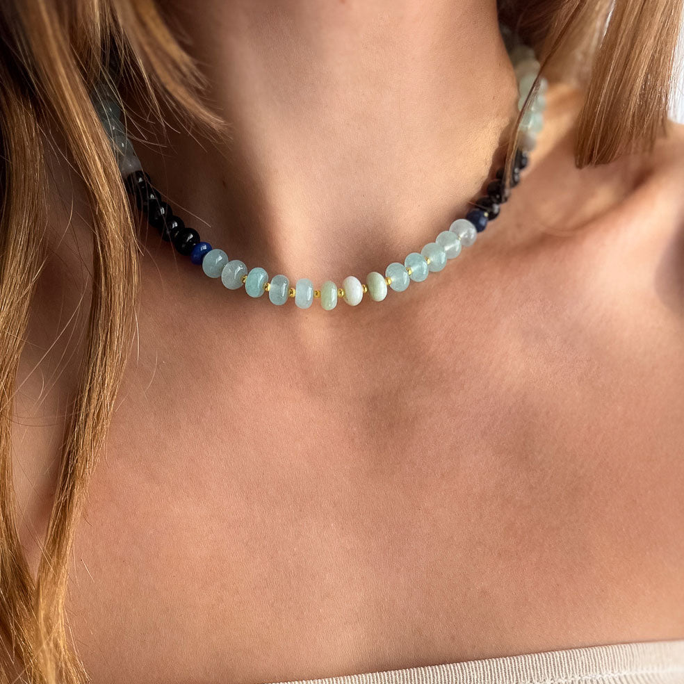 שרשרת לורן גדולה מאבני ג'ייד תכלת ואוניקס שחור