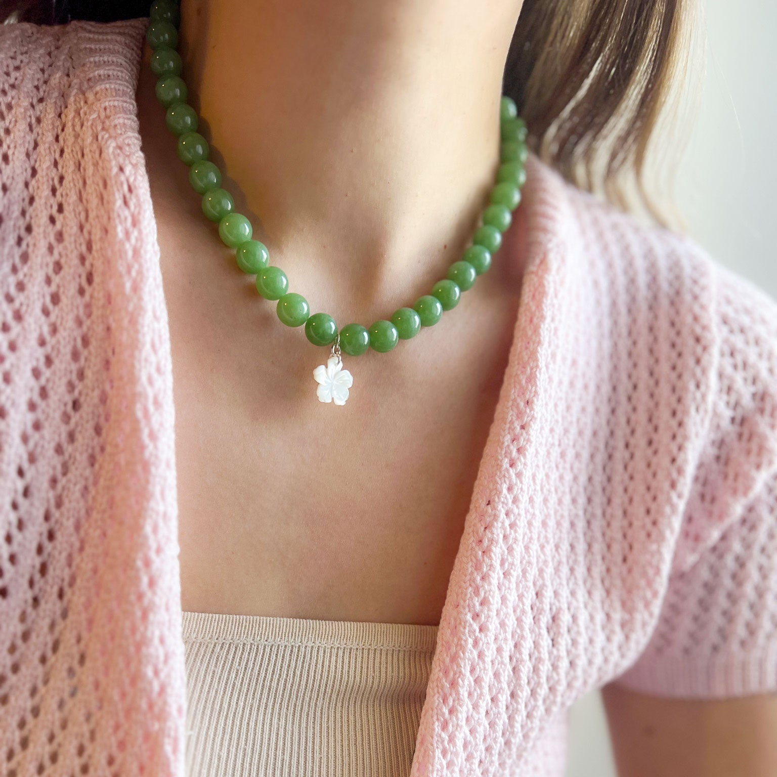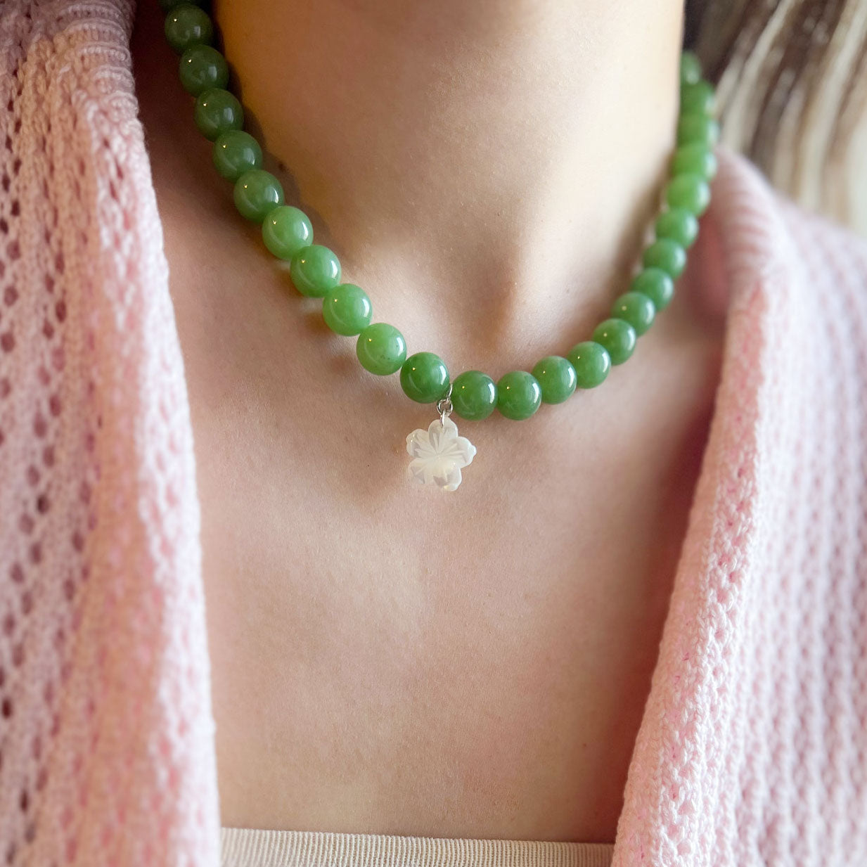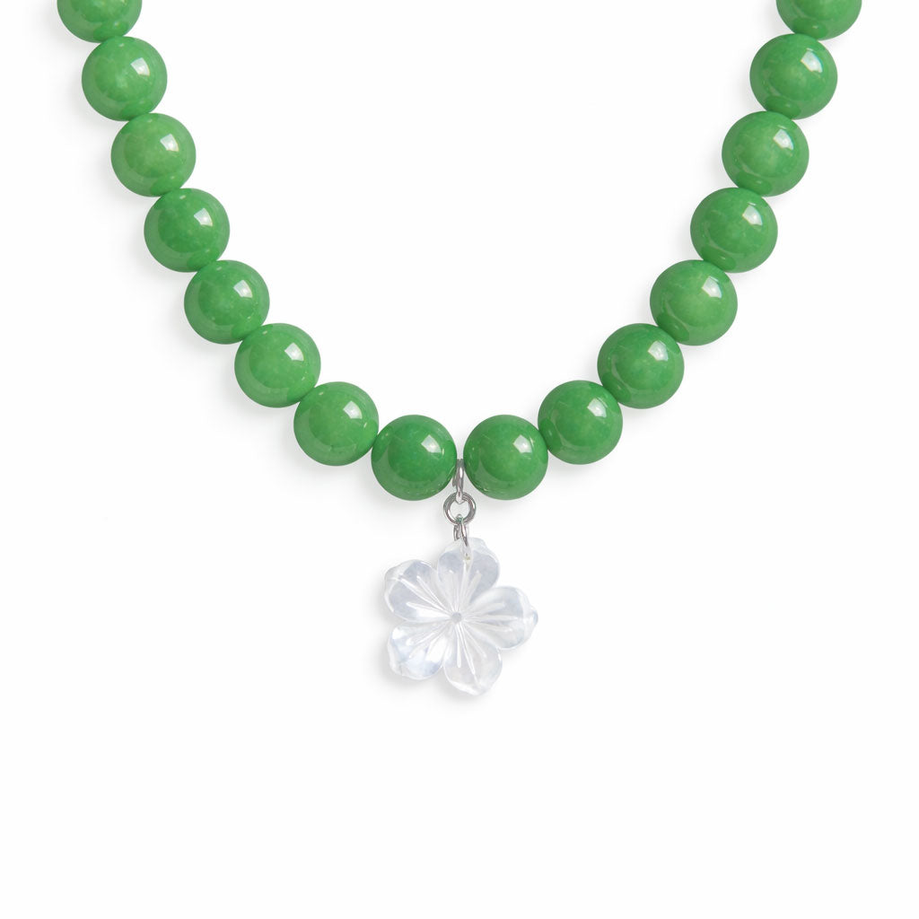 שרשרת ליה ירוק בהיר מאבני ג'ייד עם תליון צדף