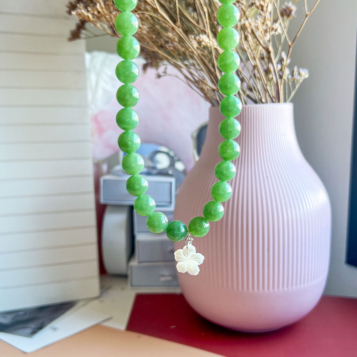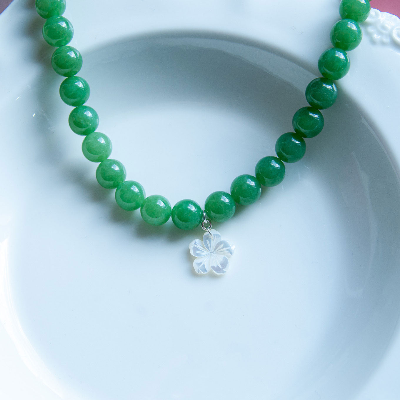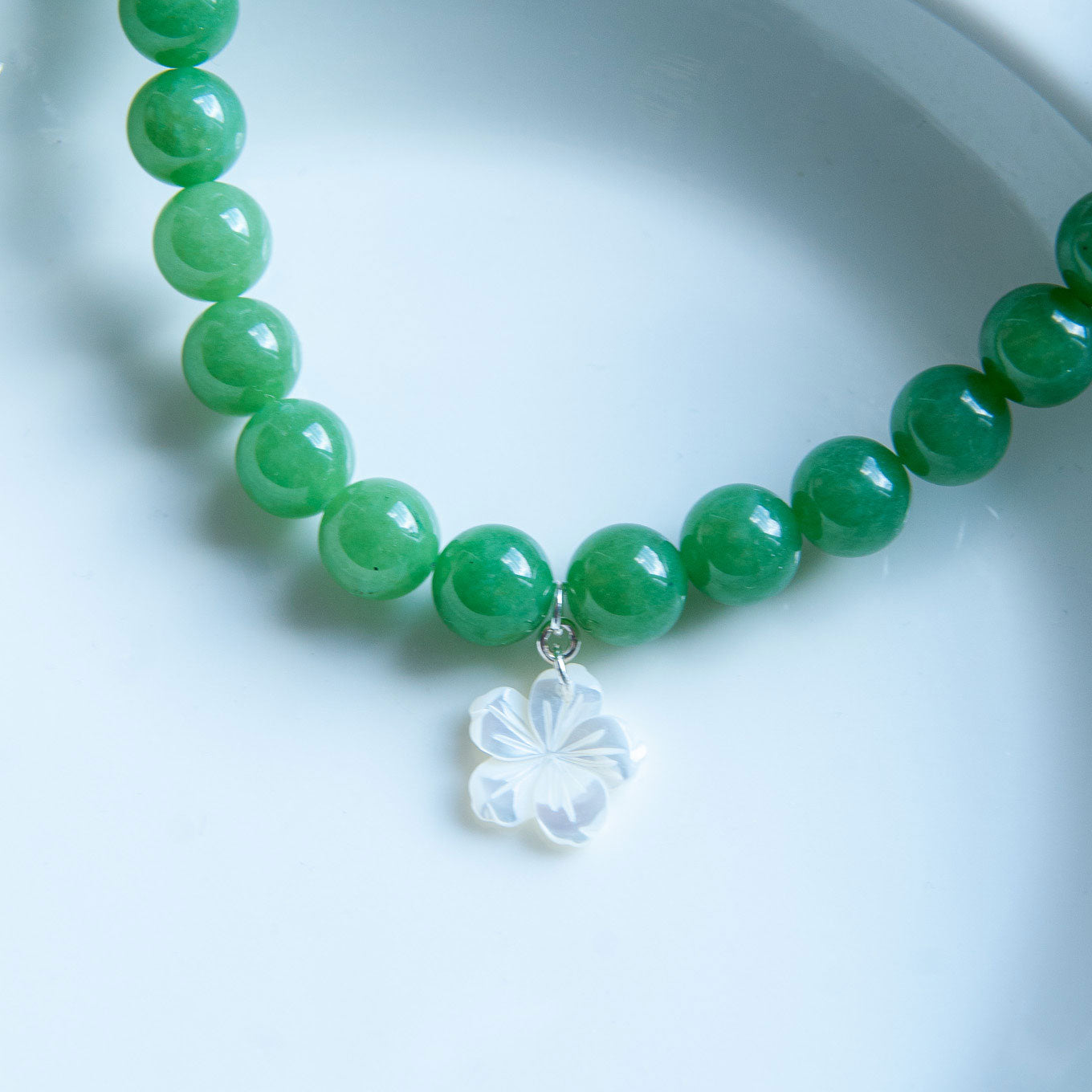 שרשרת ליה ירוק בהיר מאבני ג'ייד עם תליון צדף
