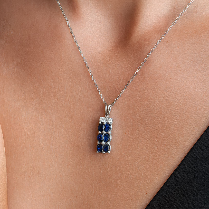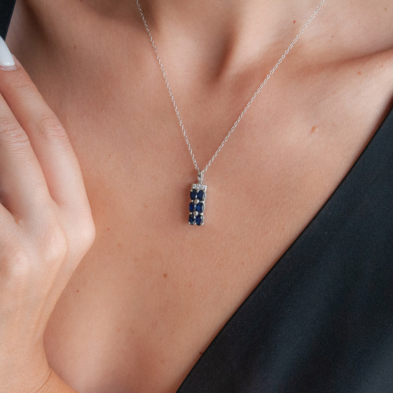 תליון אלגנטי בעבודת יד, עשוי כסף טהור 925 ומשובץ באבני ספיר טבעיות בגוון כחול עמוק ומרשים, יחד עם אבני זירקון מנצנצות שמוסיפות ברק ועדינות.
