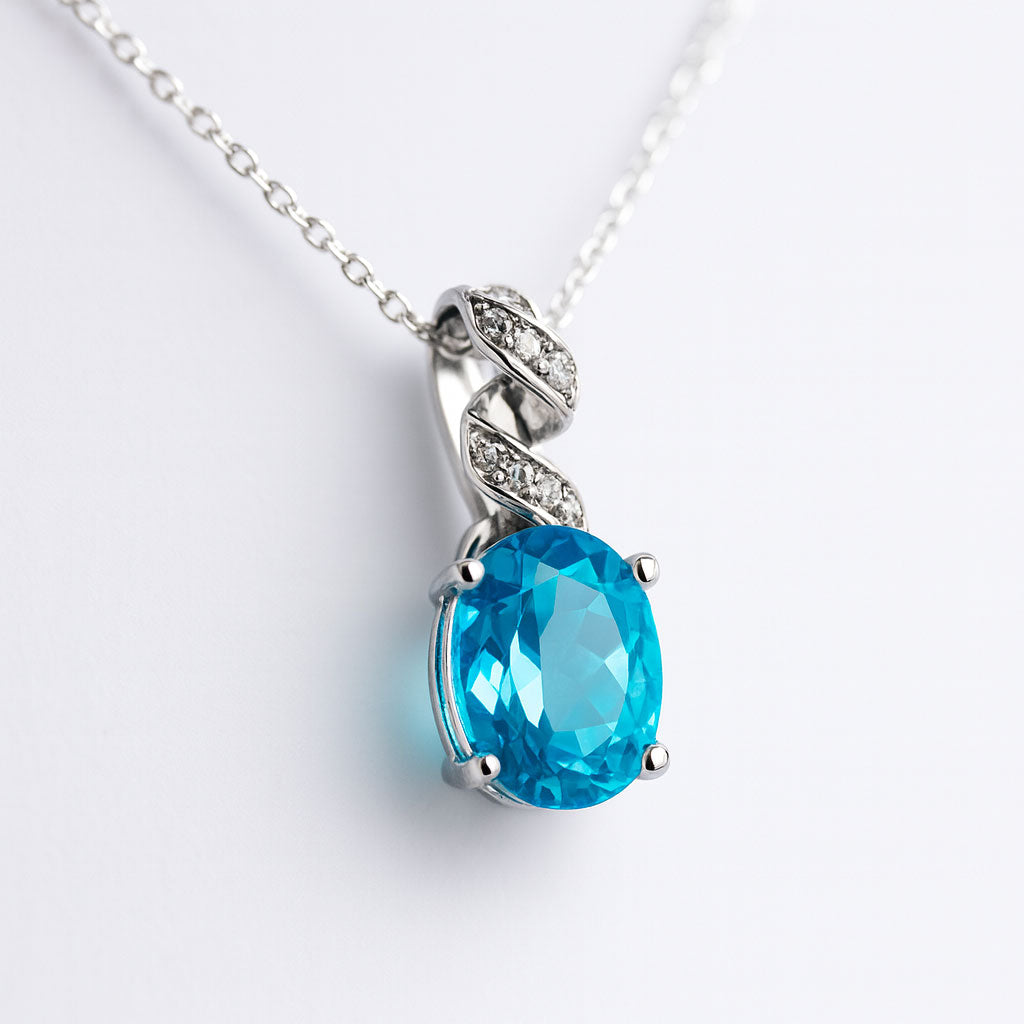 במרכז התליון משובצת אבן טופז טבעית – בגוון תכלת זוהר ונקי, המסמלת רוגע פנימי, איזון והשראה.