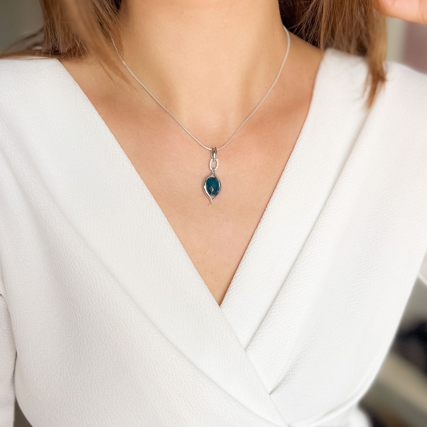 התליון מגיע עם שרשרת כסף באורך 40 ס"מ עם שרשרת הארכה 5 ס"מ ומשלים מראה מלא נוכחות ואצילות.