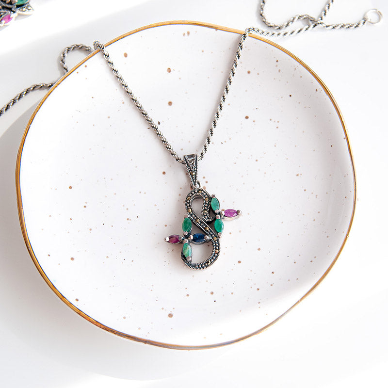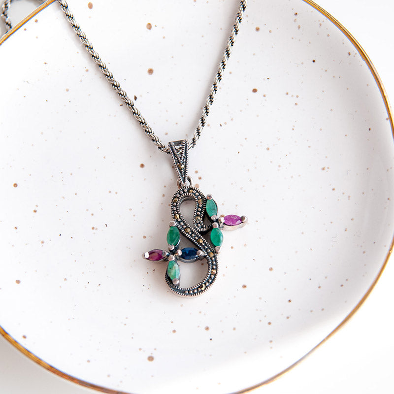 תליון מכסף טהור 925 עם אבני מרקזייט