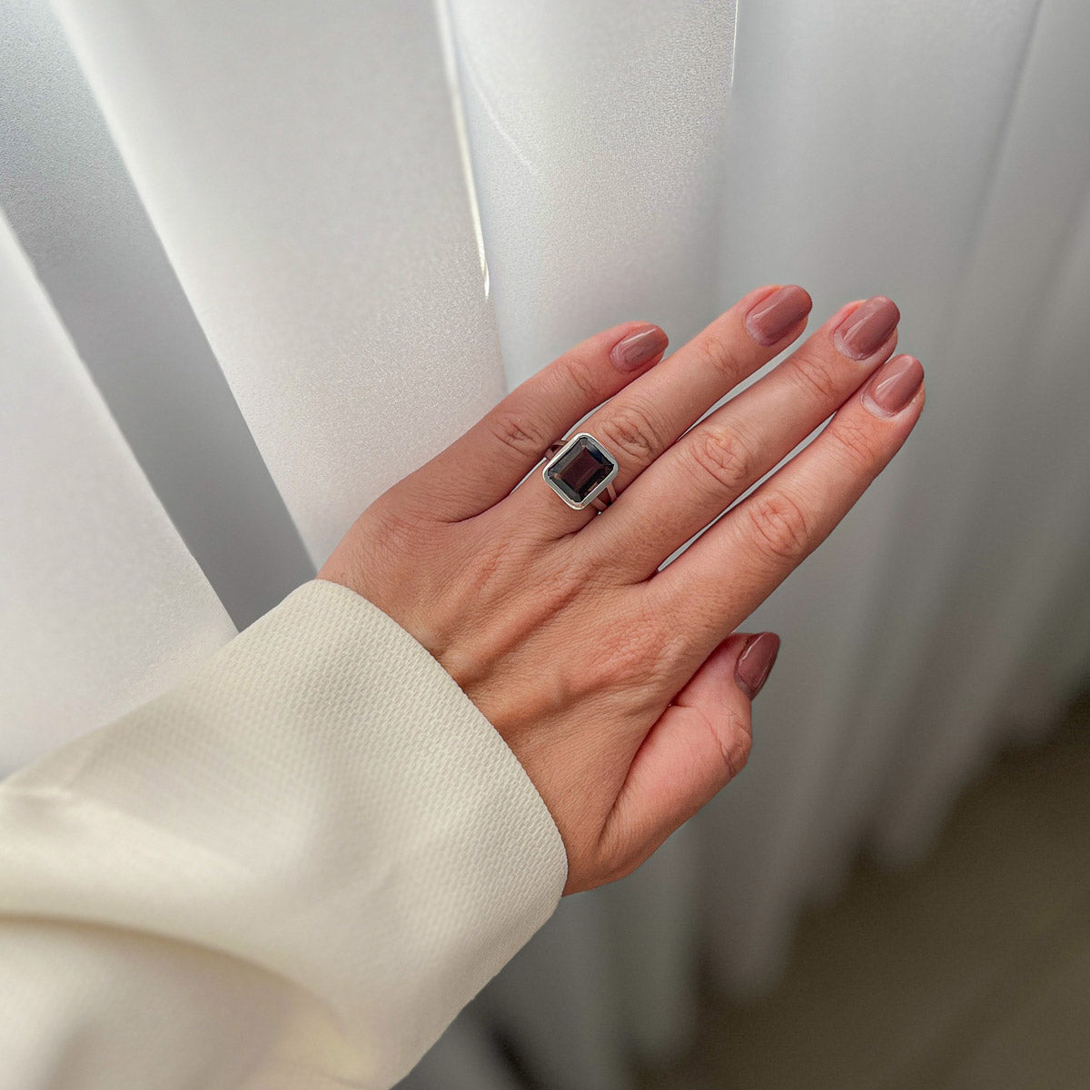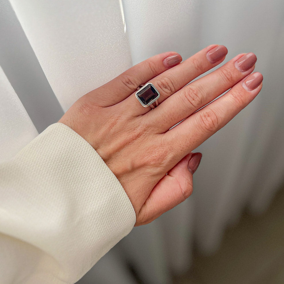 MADY טבעת כסף עם אבני סמוקי קוורץ